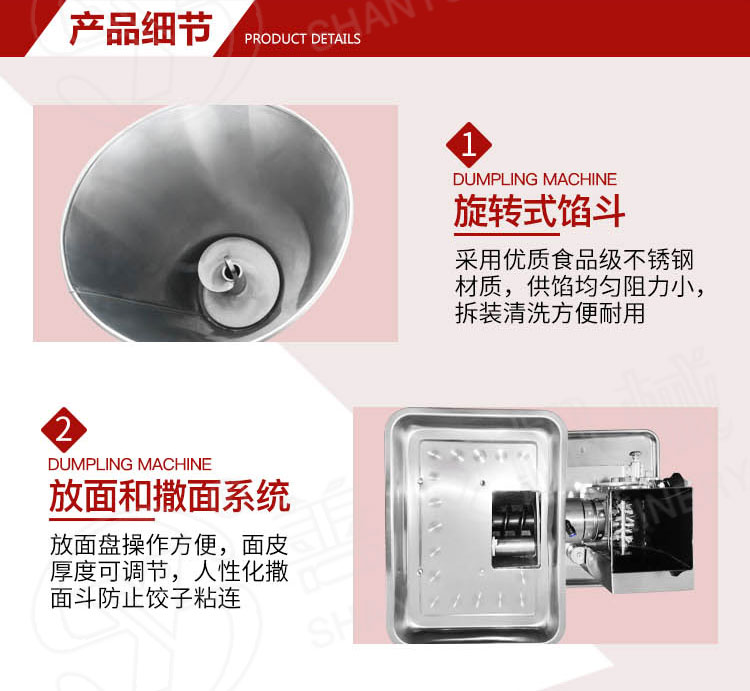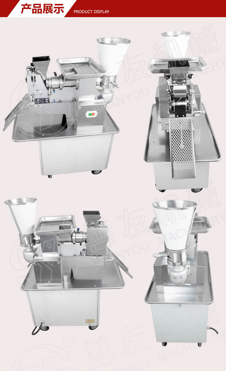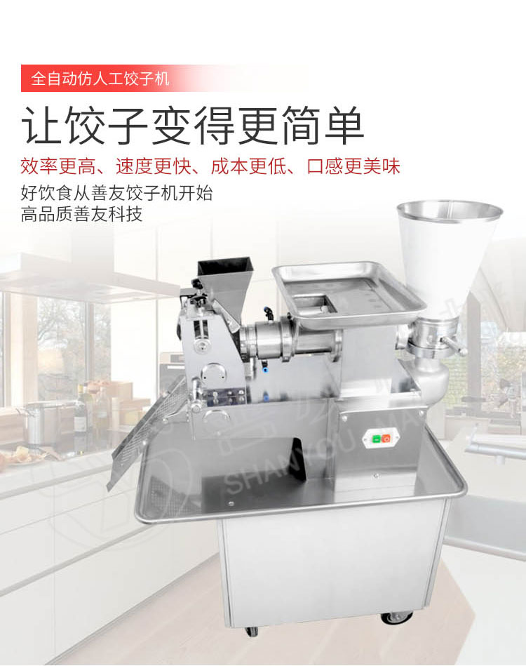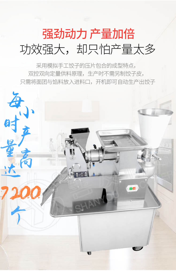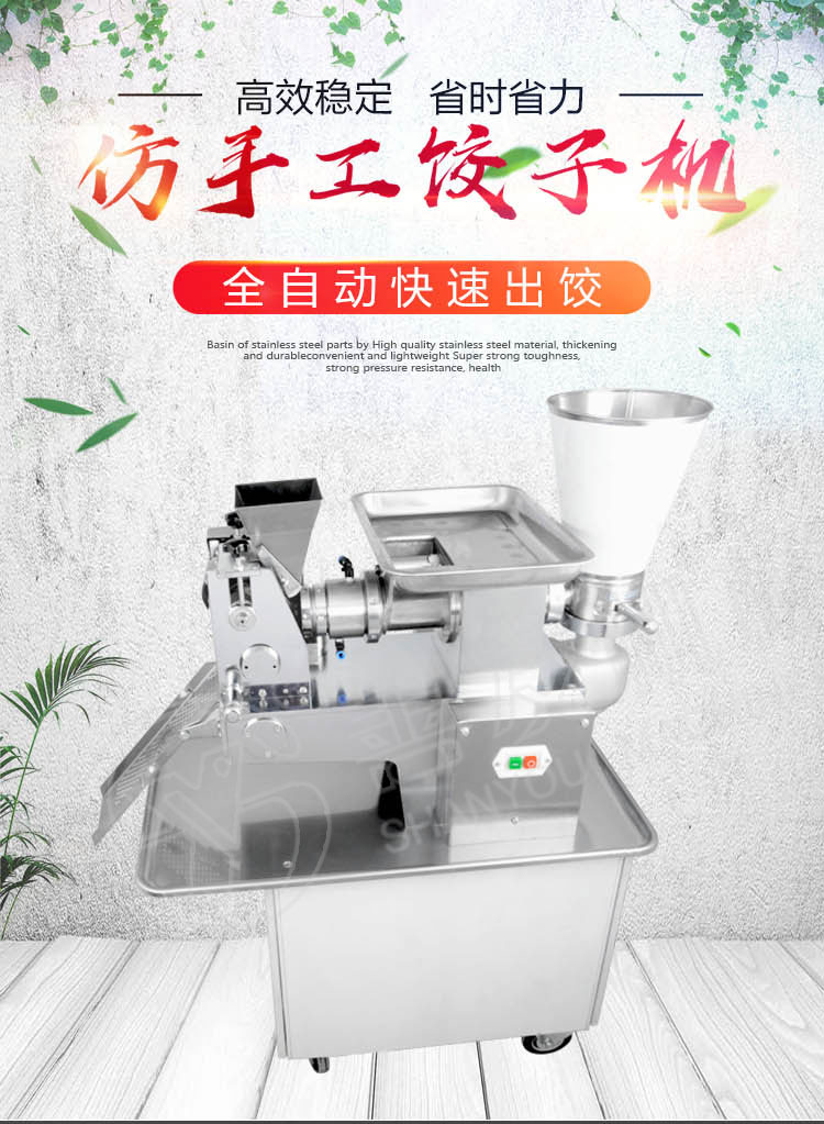 SY-JZJ系列饺子自动成型机,本机适用于宾馆、饭店、餐厅、团体食堂加工、幼儿园、速冻饺子生产。各种肉馅、肉菜混合馅、全菜馅及其它种馅的饺子。