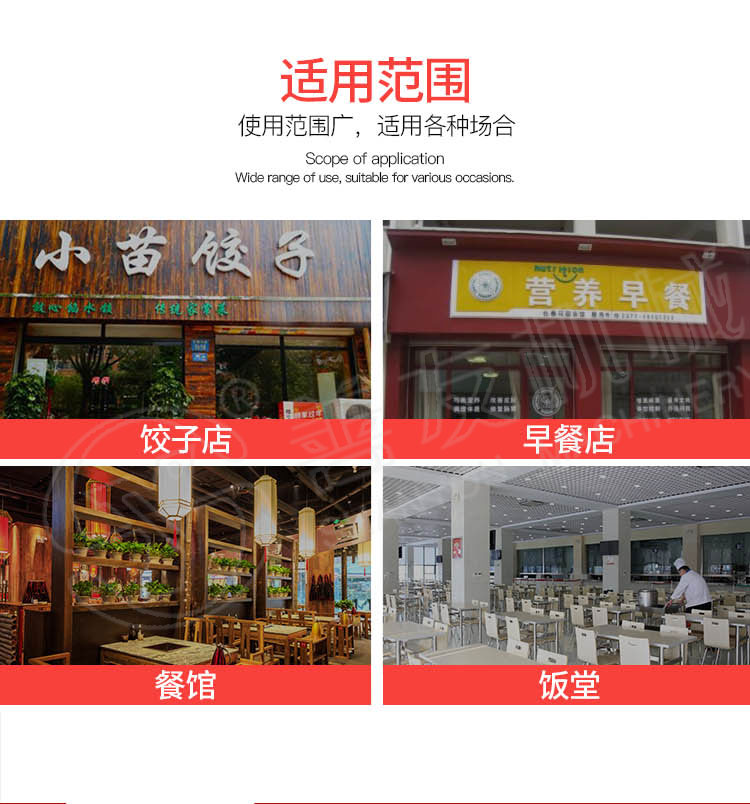 1. 一机多用途:只要更换模具,就可以制造不同的食品:春卷、馄饨、火锅水饺、珍珠水饺、咖喱饺子、花边饺子、锅帖饺子。